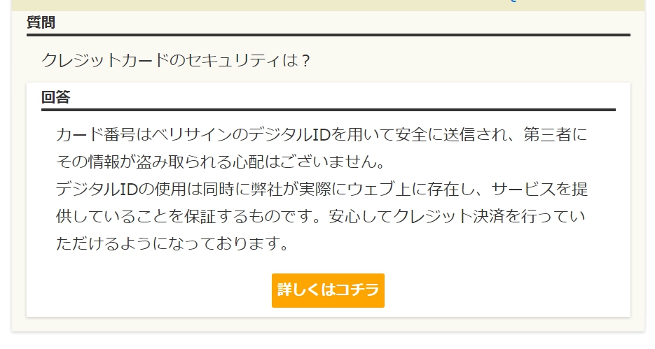 ちなみにクレジットカード決済のセキュリティ対策について公式サイトに以下のような説明があります。