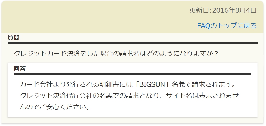 あいだに、長年の実績と信頼のあるクレジットカード決済代行会社のBIGSUNクレジット決済システムという決済サ−ビスが入っています。